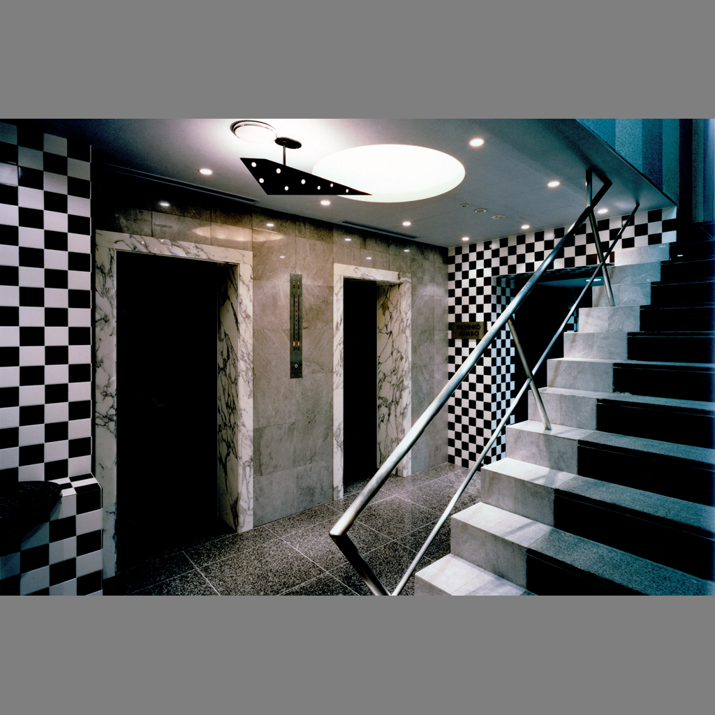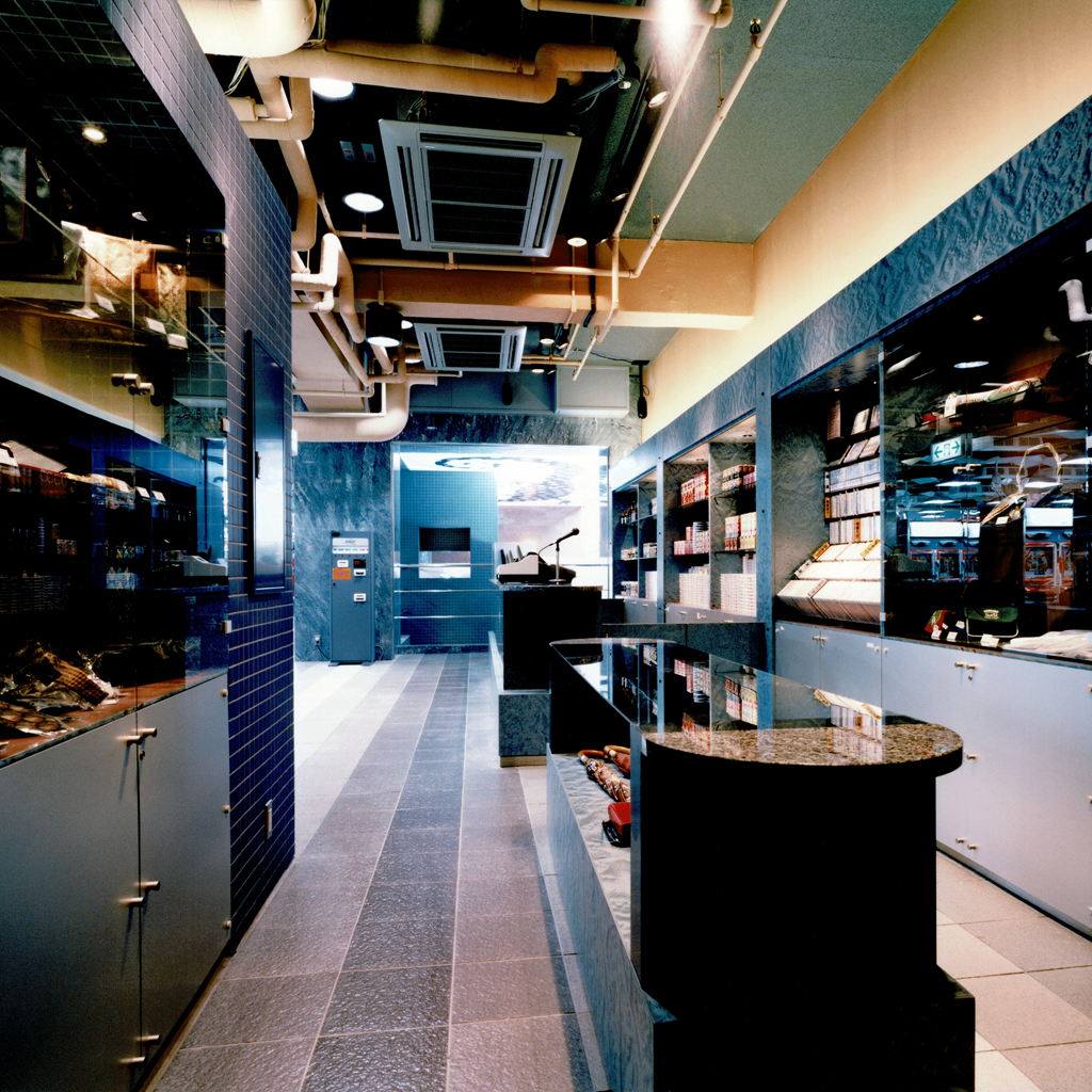 B1Fから2Fまでを過去・現在・未来の都市に見たてたパーラー