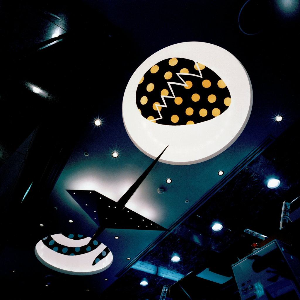 天井画のポップ・アートが店のシンボル
