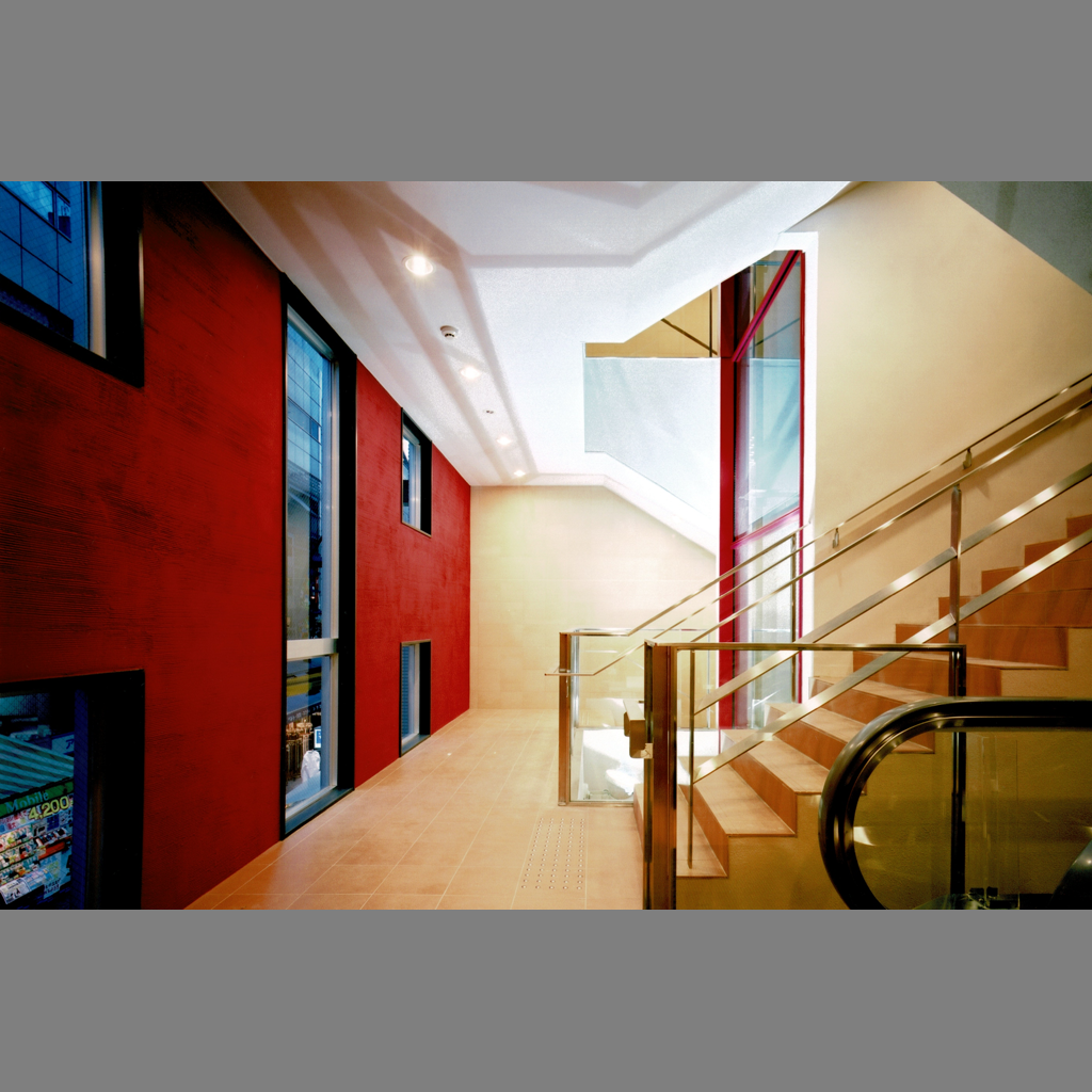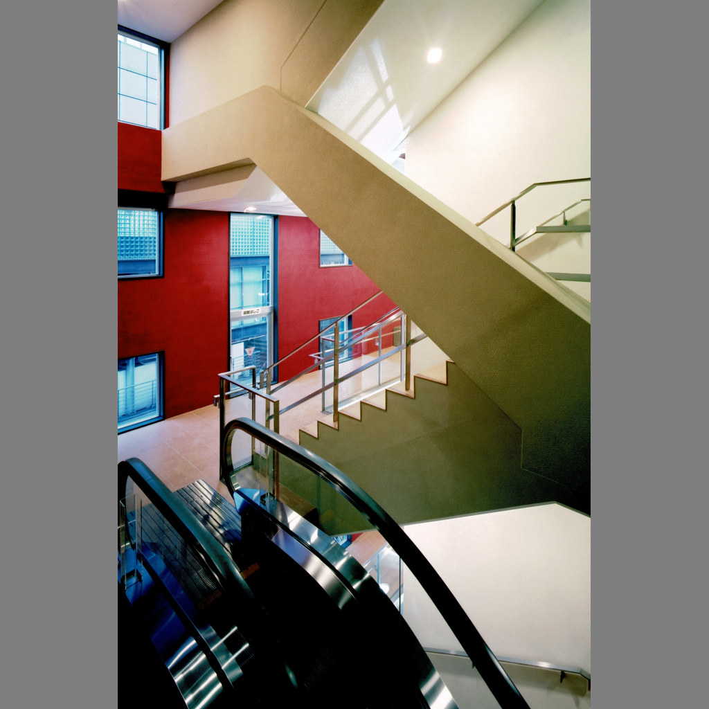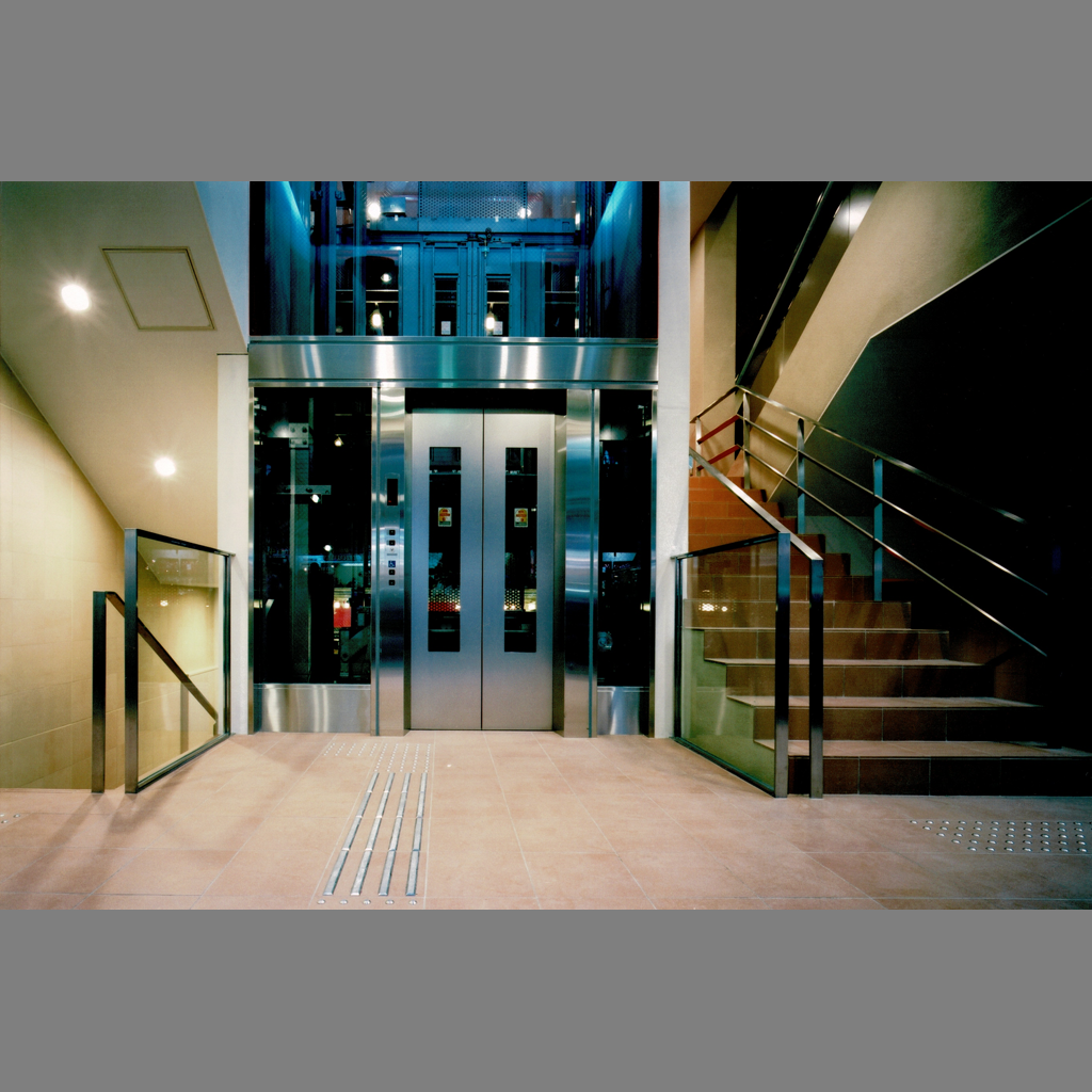 スキップフロア・シースルーエレベーターで空間の変化を楽しめる商業ビル